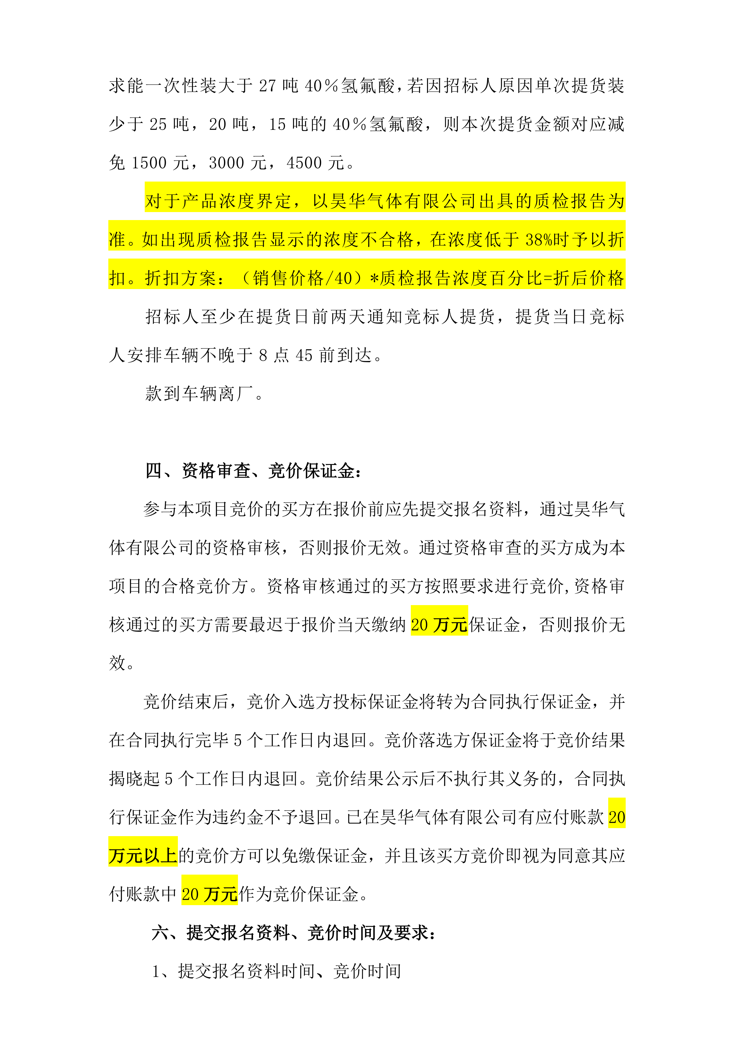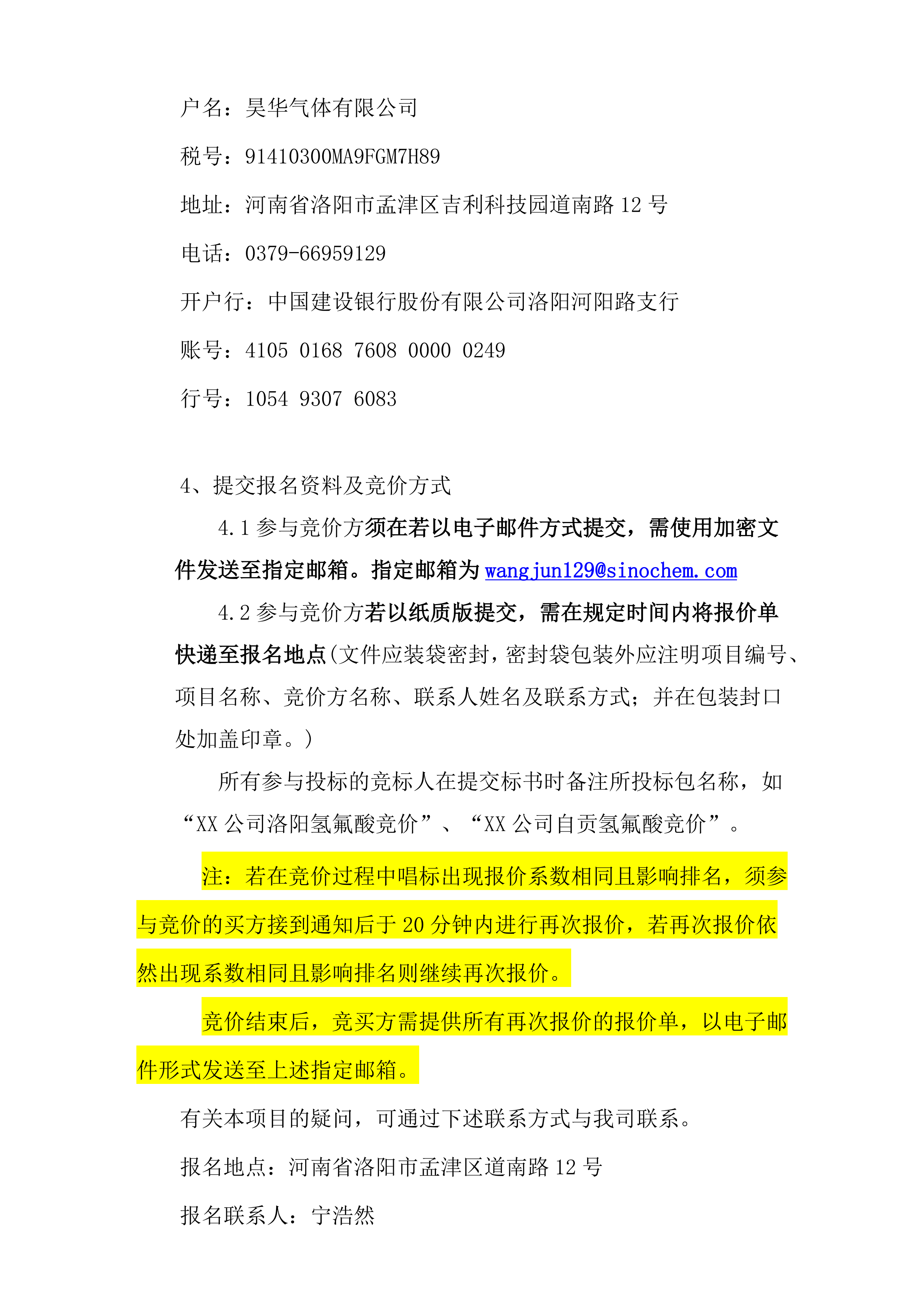 昊华气体(自贡)有限公司关于 40%氢氟酸竞价销售公告